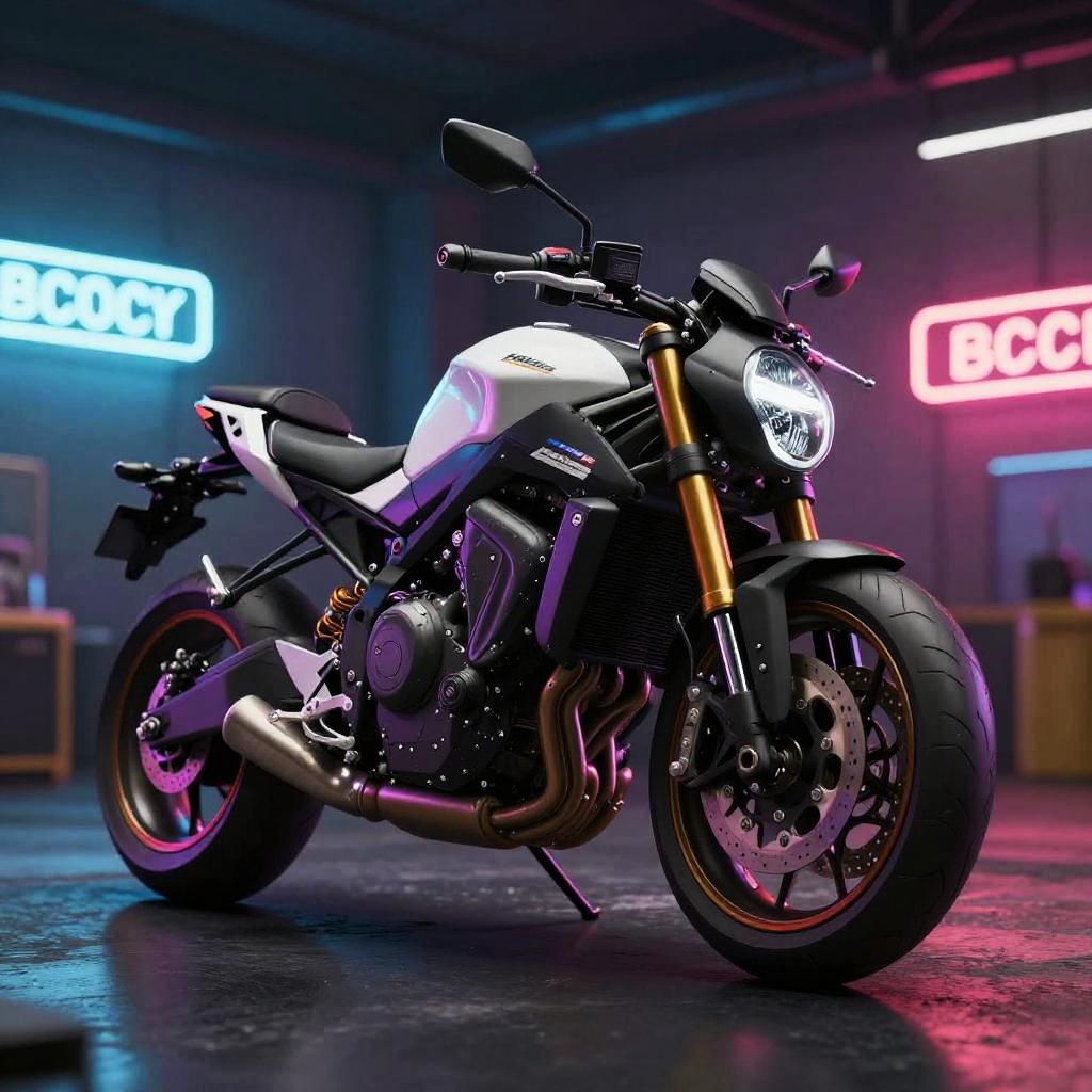 Hyperrealistic Motorcycle with Neon Lights