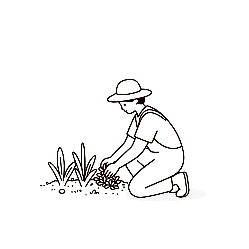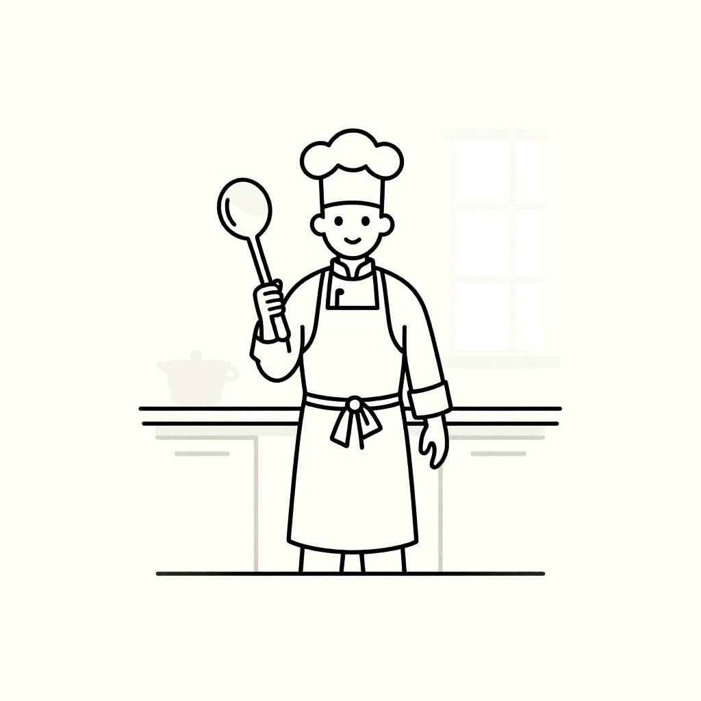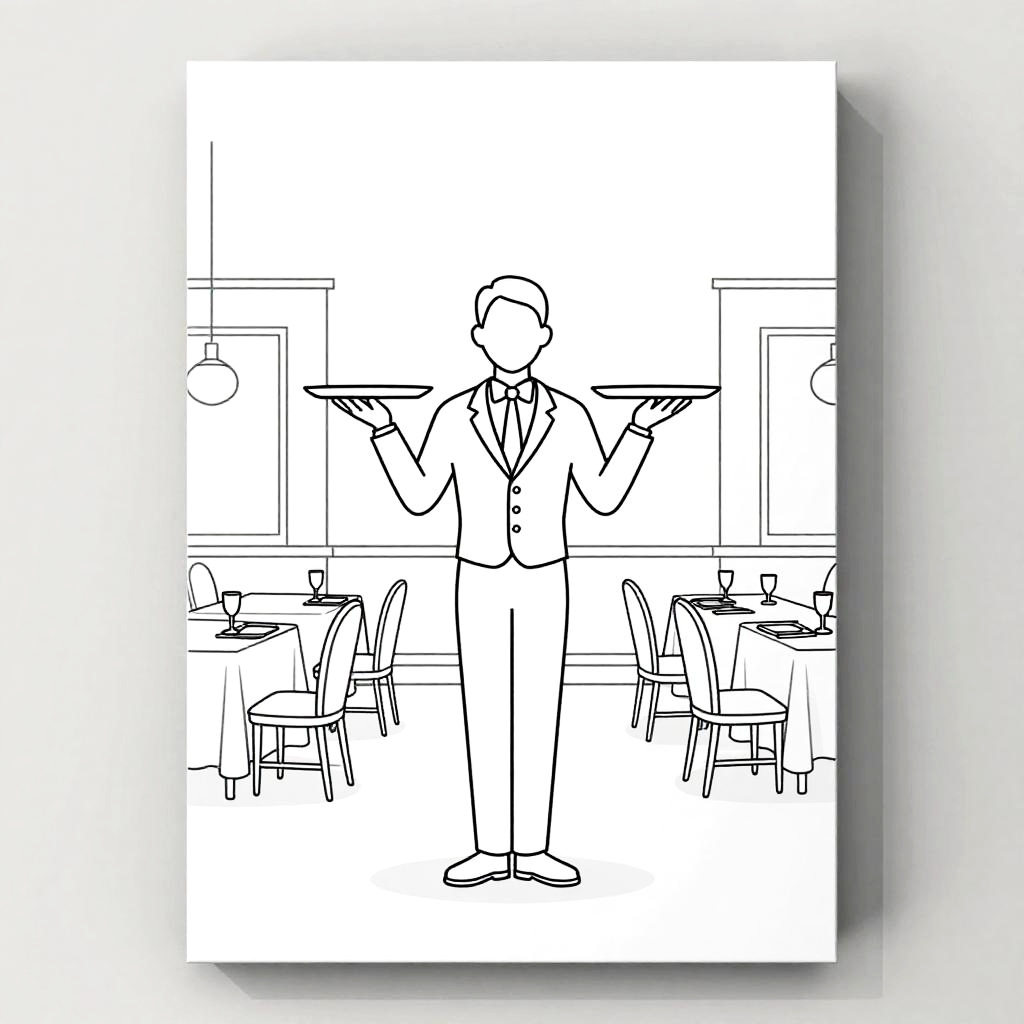 Minimalist Line Art Waiter Illustration