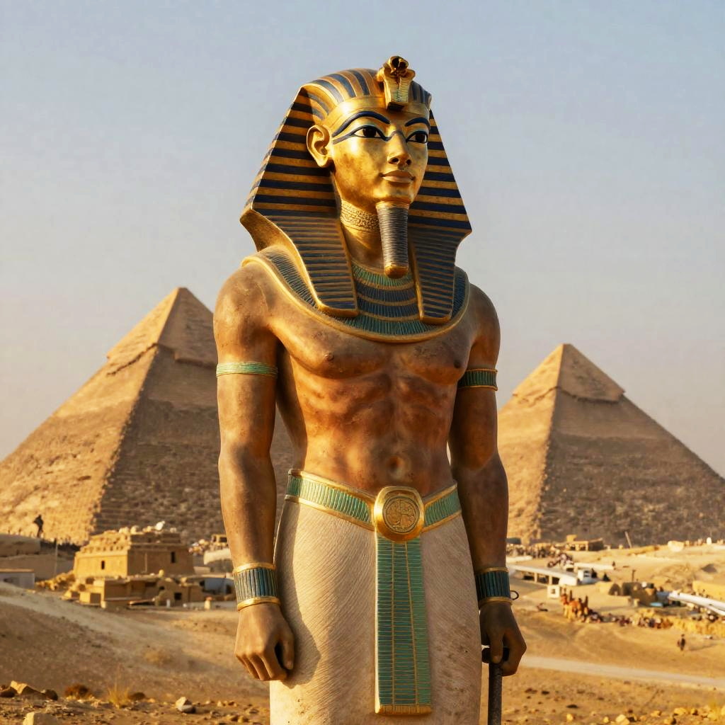 Photorealistic Pharaoh Portrait at Sunset