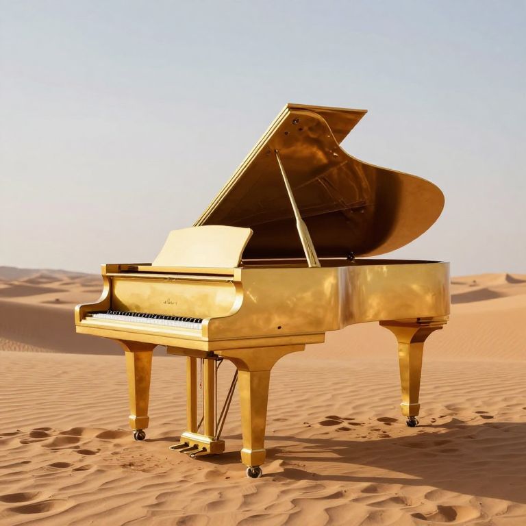 Golden Piano in Desert Landscape