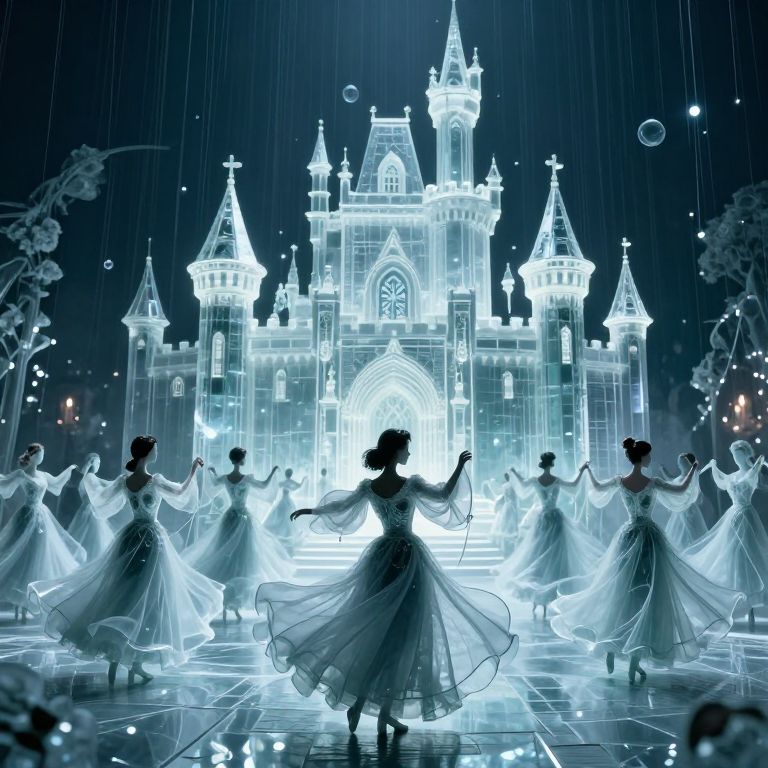 A castle made entirely of whispering glass hosts a silent ball hosted by ghosts who waltz in reverse to celebrate the future.