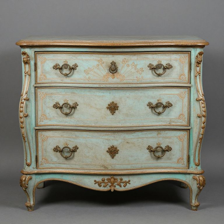 Painted Venetian Commode, Rococo Style, Teal & Ochre Reserves