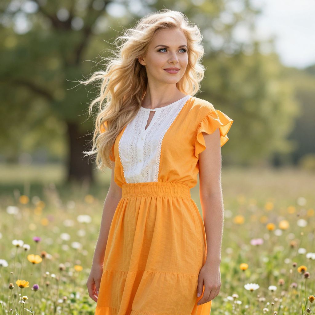 Blonde Woman in Floral White Dress