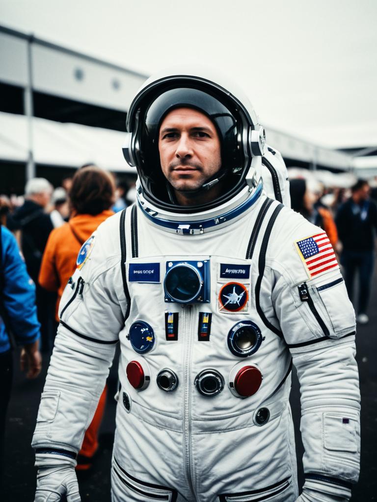 Man in Astronaut Costume, cosplay festival photo, photorealistic realism