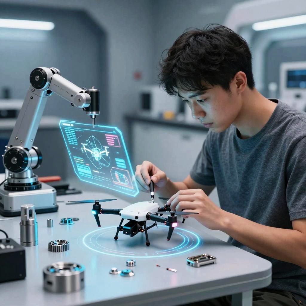 Futuristic Gadget Mechanic Assembling Drone