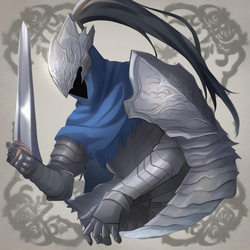 Artorias the abysswalker, dark souls (series), 1boy, full armor, helmet, full armor, knight, gauntlets, knight, plume, pauldrons, by artist sukoyaka (100hituzi), leet
