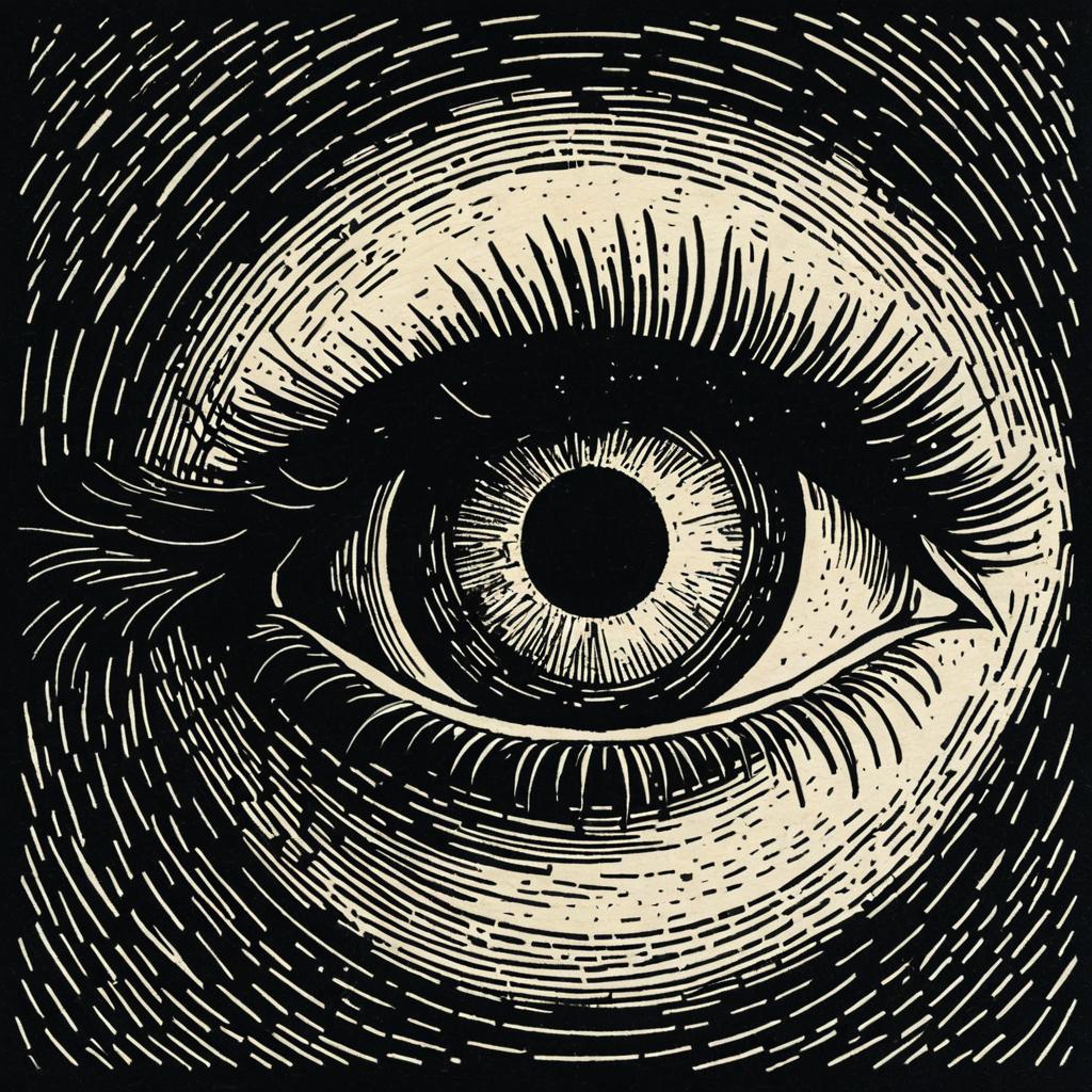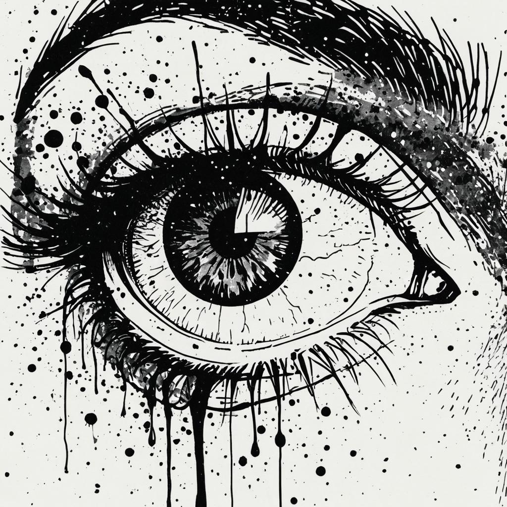Print of an eye with ink splatter textures, in the style of minimalist line art, inspired by Scandinavian design