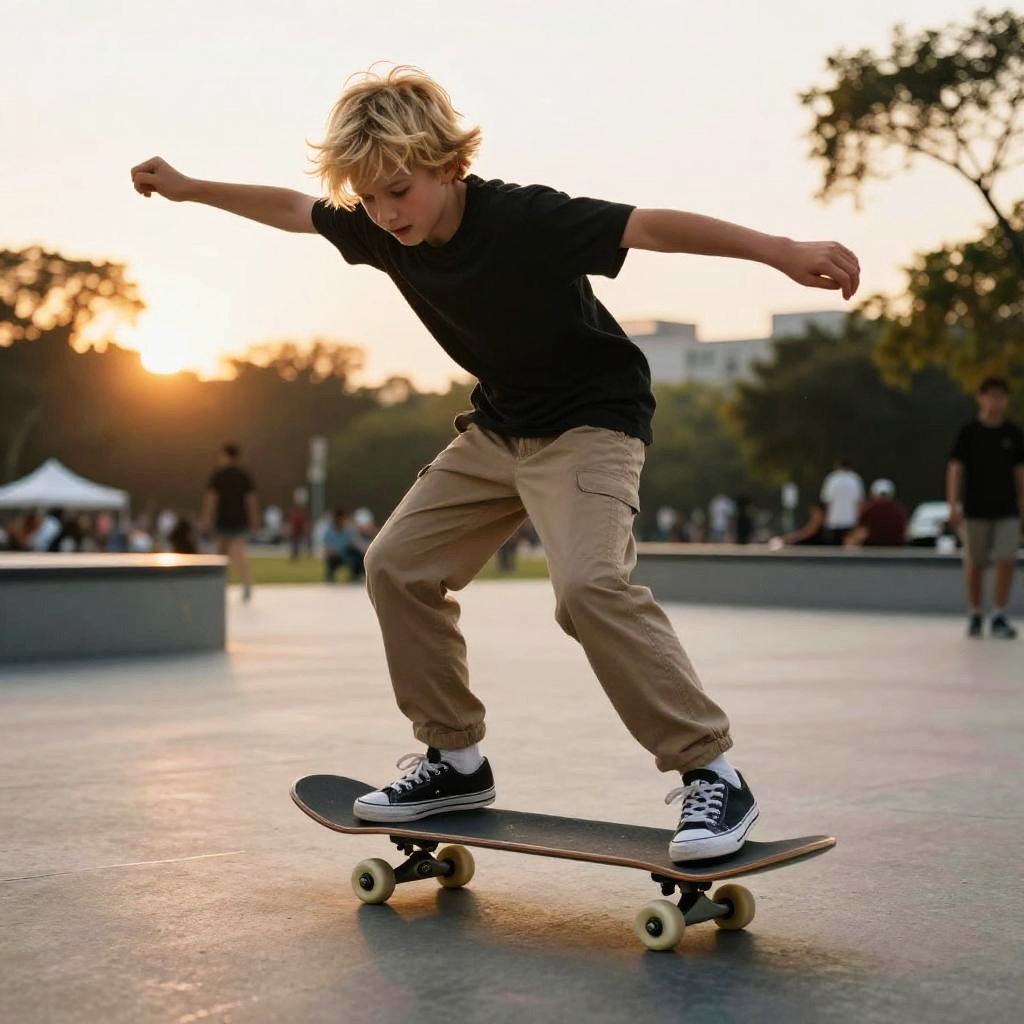Fantasy skateboard tricks with spectral sparks, electric, bold and spellbinding action-packed adventure, mysterious and artistic style.