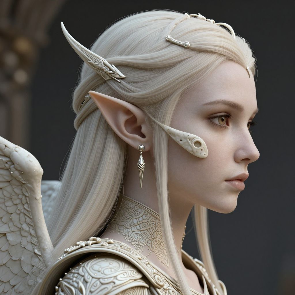 Anime manga skull profile, young woman, elf, galadriel, wings, tolkien, unreal engine, intricate, elegant, highly detailed, digital art, art by jc leyendecker and sachin teng