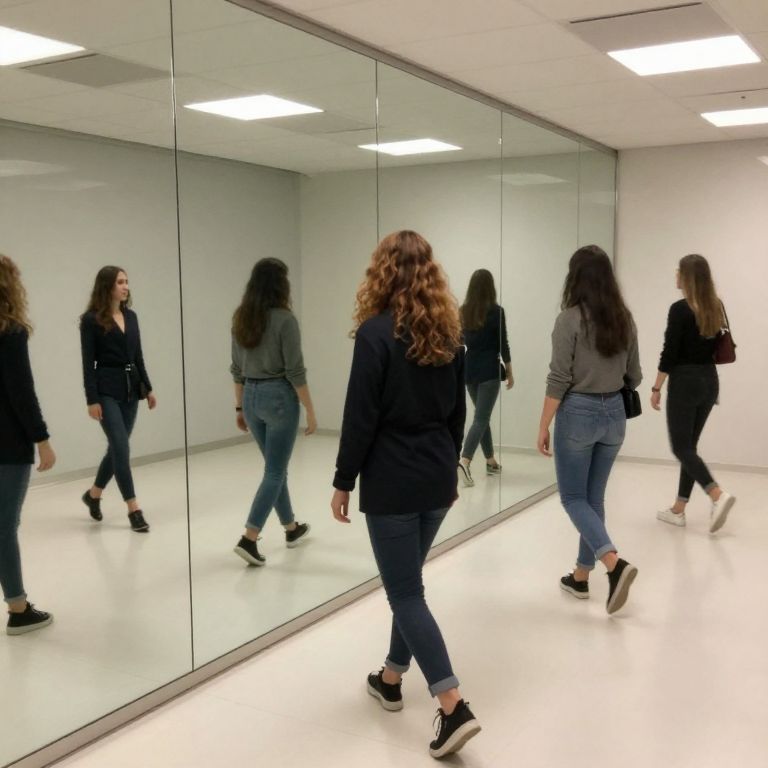 A mirror world where reflections move first and their real-world counterparts imitate them with delayed grace, causing people to walk backward toward destinations they’ve already reached.