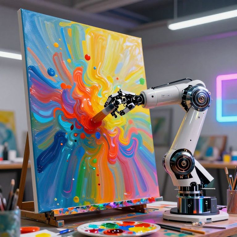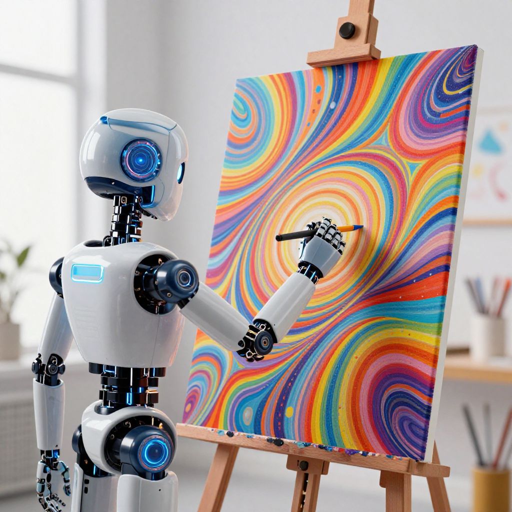 Surreal AI Robot Painting Scene