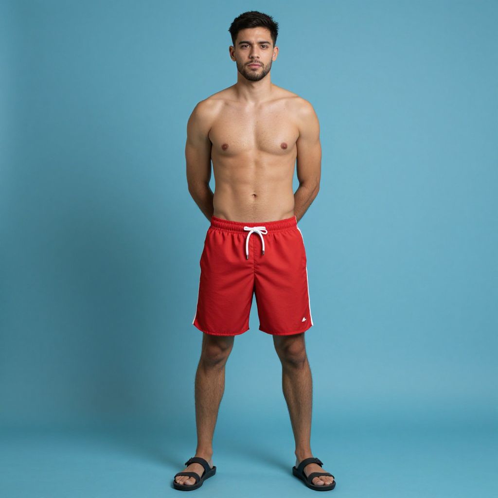 Topless Man in Red Swim Trunks