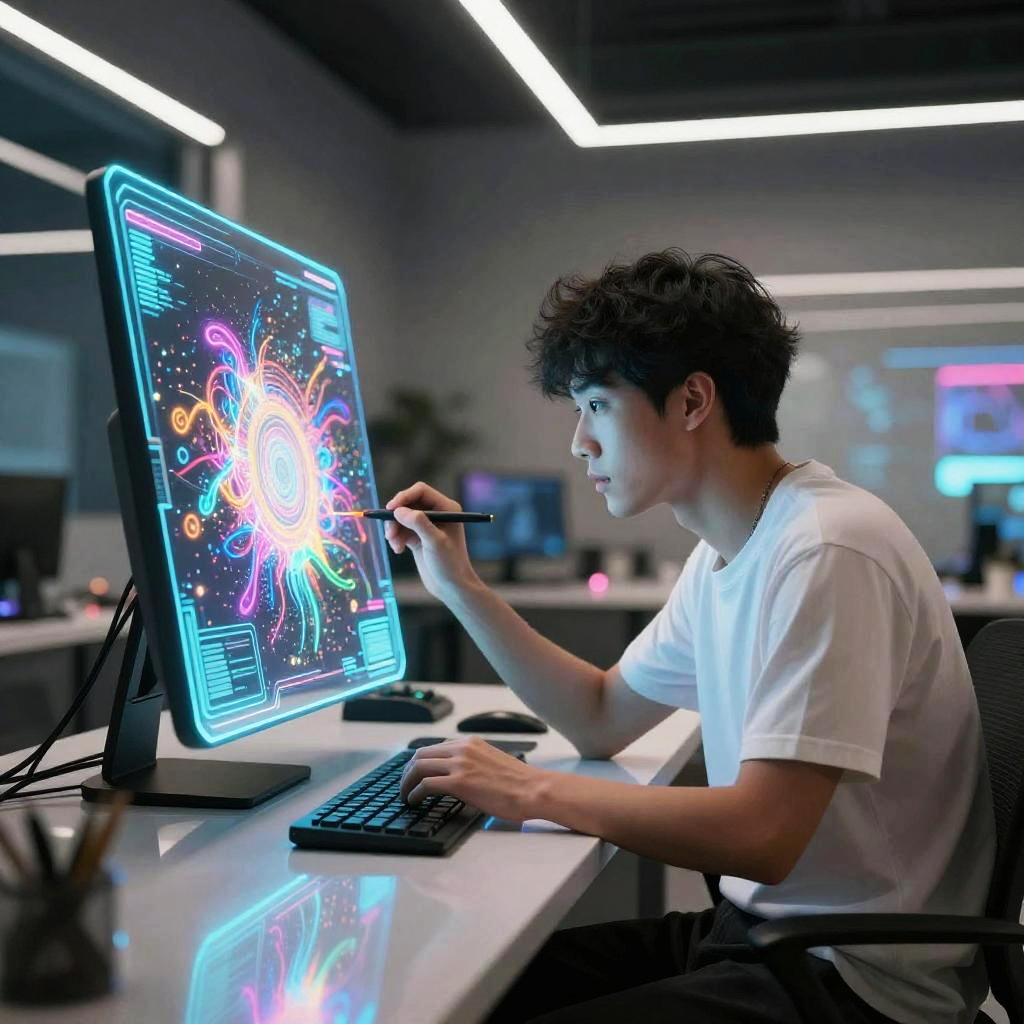 Futuristic Digital Artist with Holograms