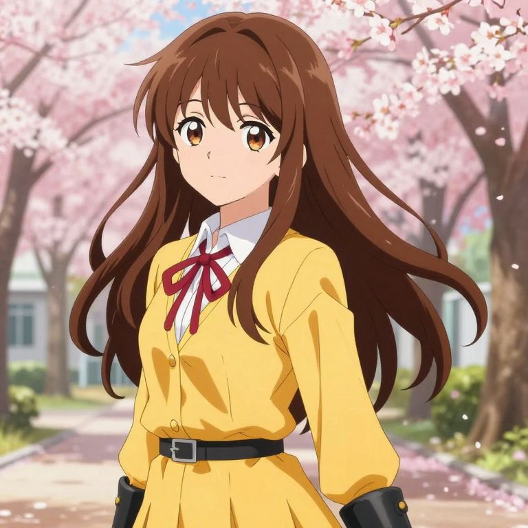 Vibrant Anime Girl in Cherry Blossoms