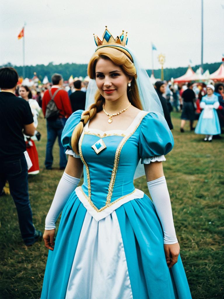 Woman in Princess Rosalina Costume, photorealistic festival cosplay photo