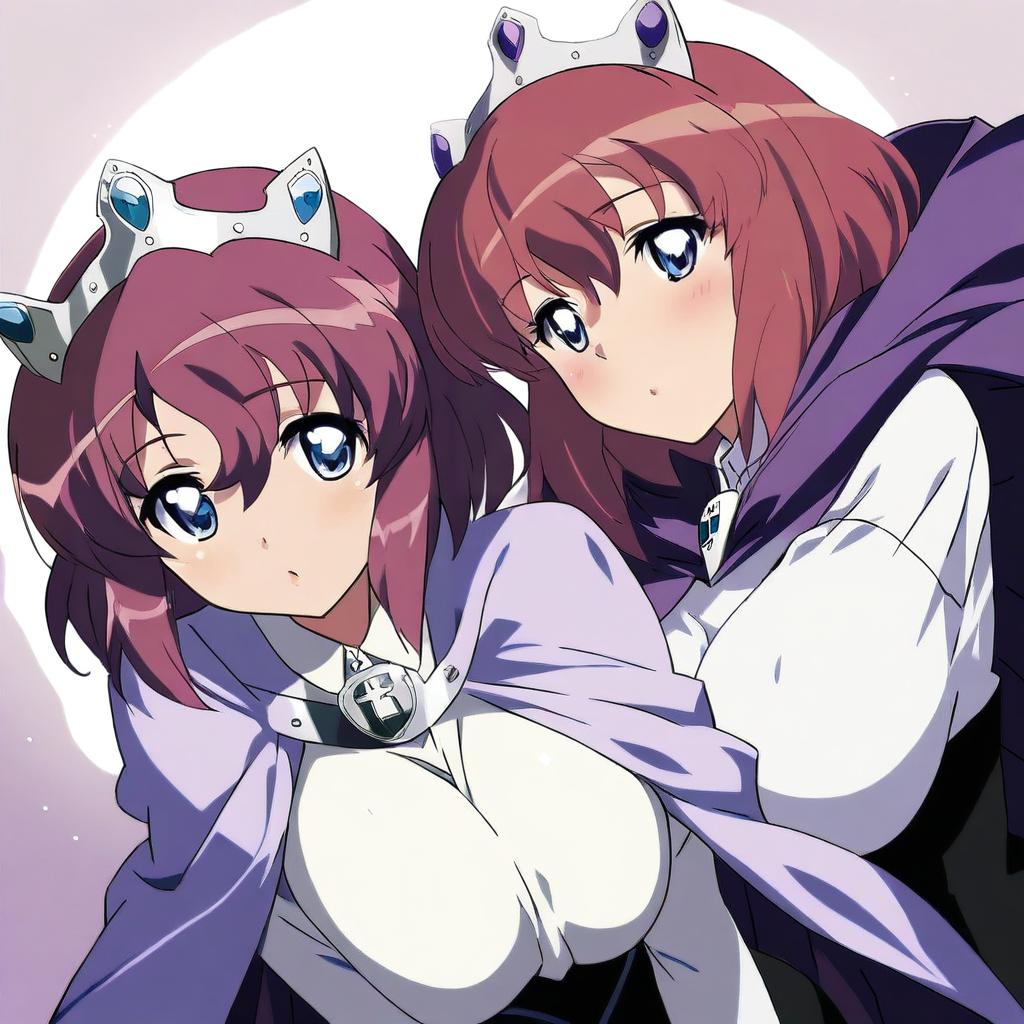 Henrietta de tristain, zero no tsukaima, 1girl, blue eyes, purple hair, short hair, large breasts, crown, by artist niwatazumi, animagine