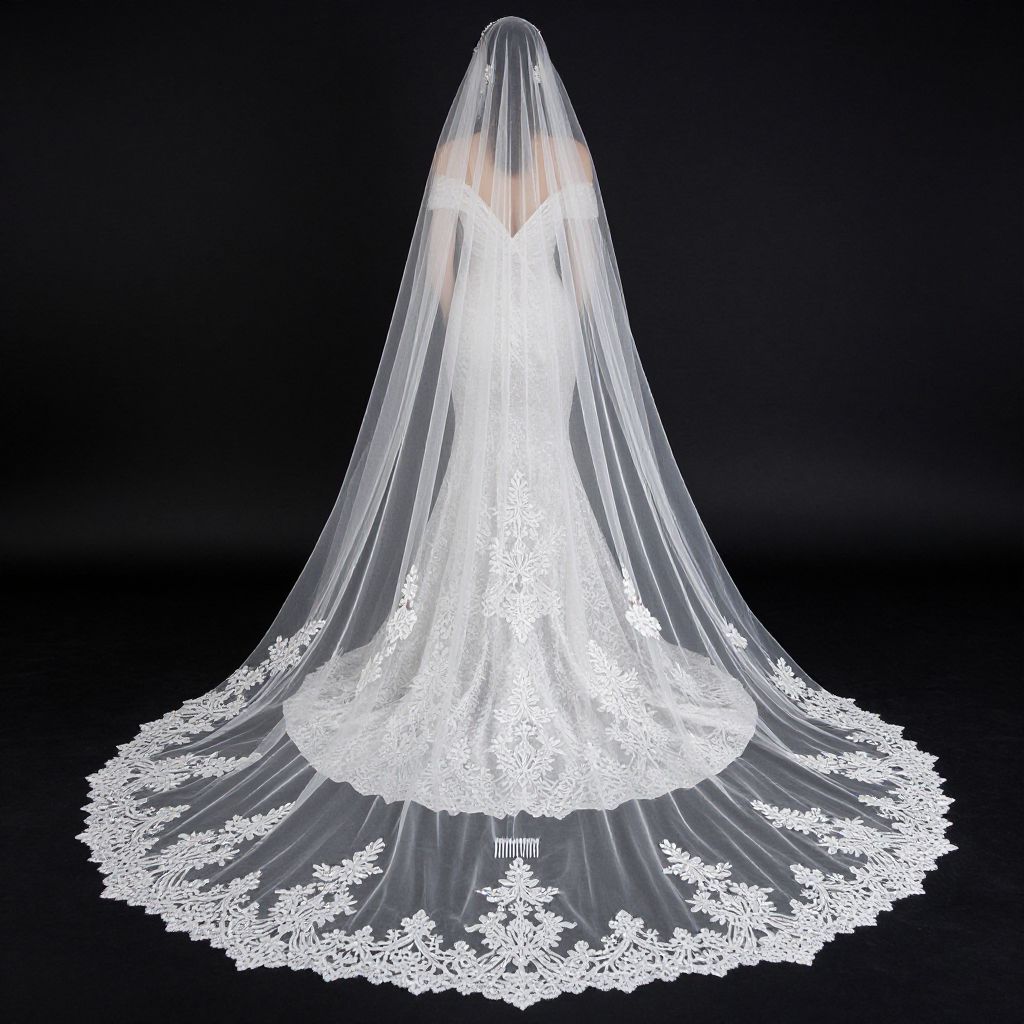 Romantic 3 M Wedding Veil Cathedral One Layer Lace Appliqued Long Bridal Veils With Comb Woman Marry Gifts 2018 New Accessories