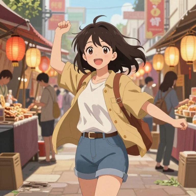 Anime girl wearing overalls, urban street setting at dusk, neon signs glowing softly, holding a sketchbook, short hair with playful expression, intricate shading, dynamic lighting, modern casual fashion, cinematic perspective, highly detailed illustration
