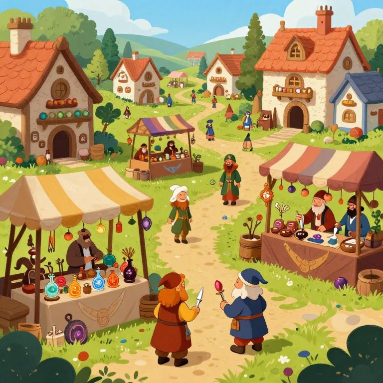 Whimsical Fantasy Market Scene