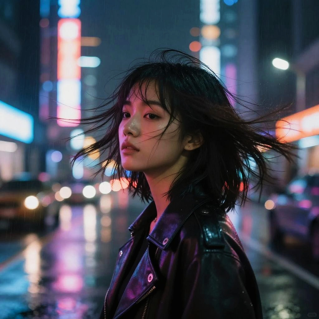 Drama prompts illustrating a solitary figure in a rain-soaked street, lost in thought, surrounded by blurred city lights, evoking themes of loneliness and inner turmoil, painted with a soft color palette and cinematic composition.