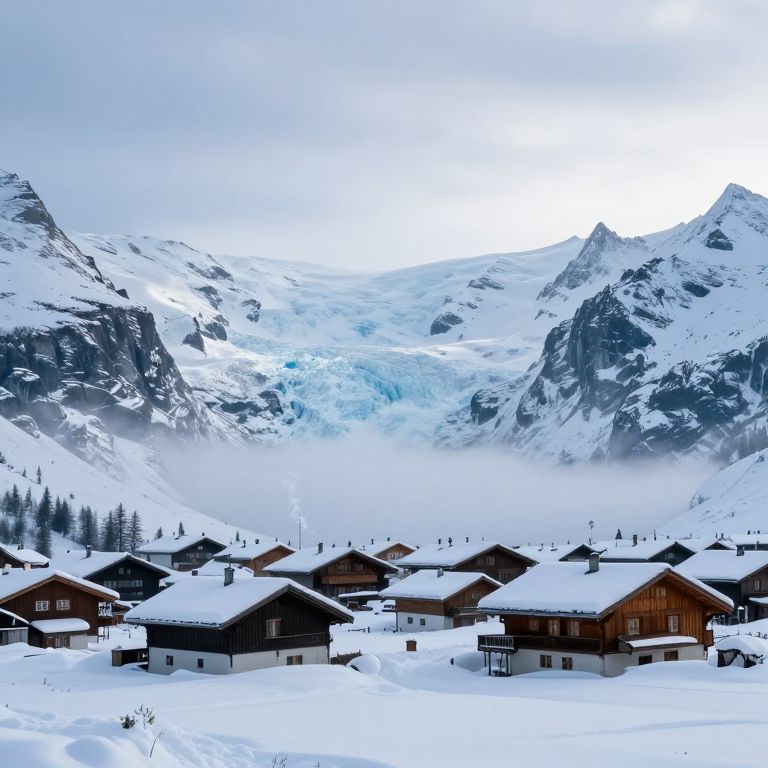Serene Alpine Village on Floating Glacier