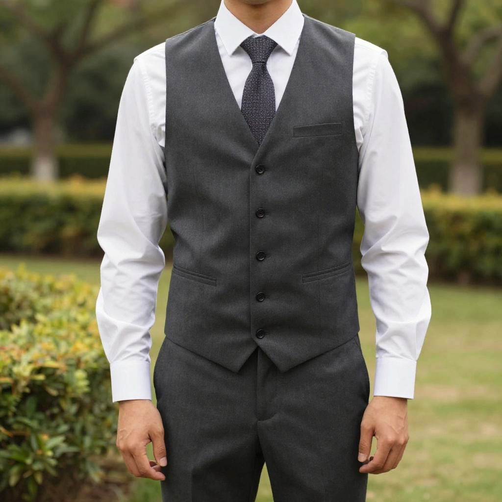 Formal Wear Vest, man in a suit and tie standing in a garden