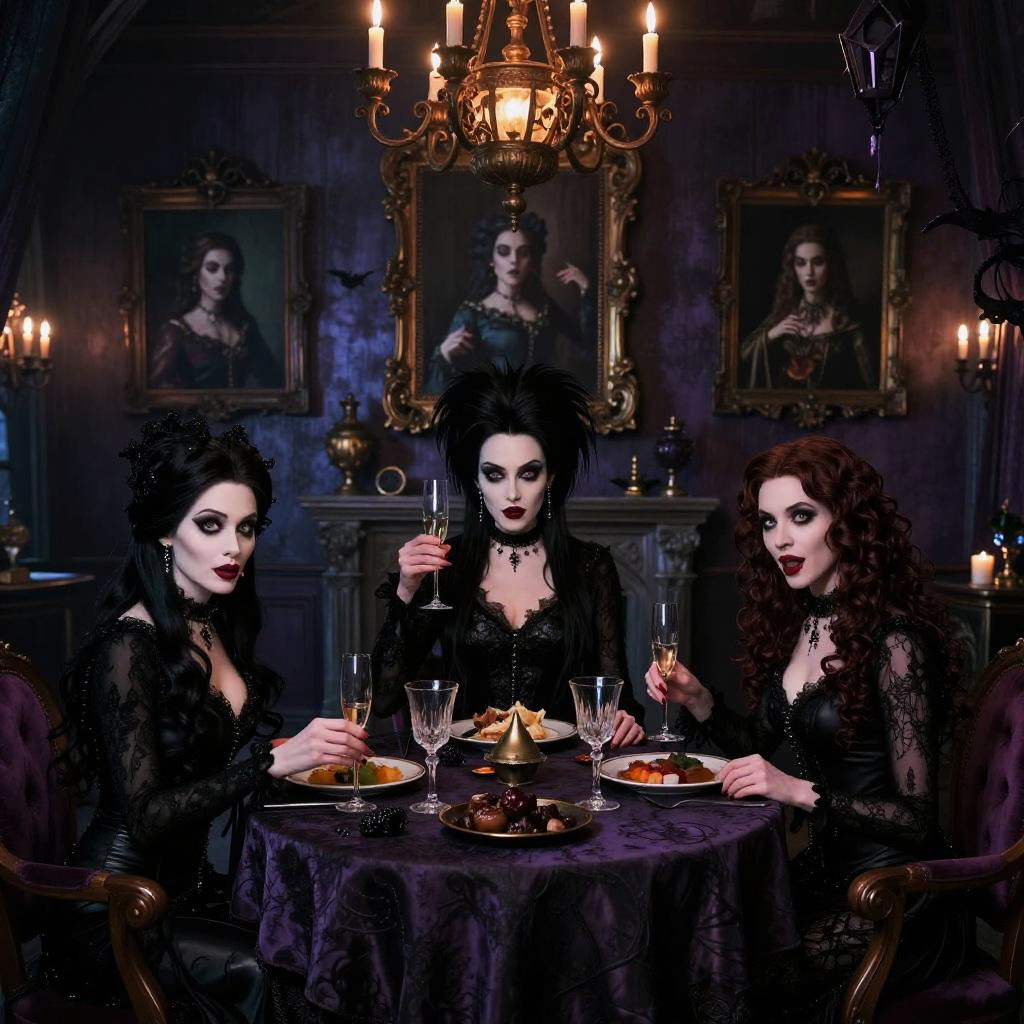 Gothic Spooky Dinner Party Scene