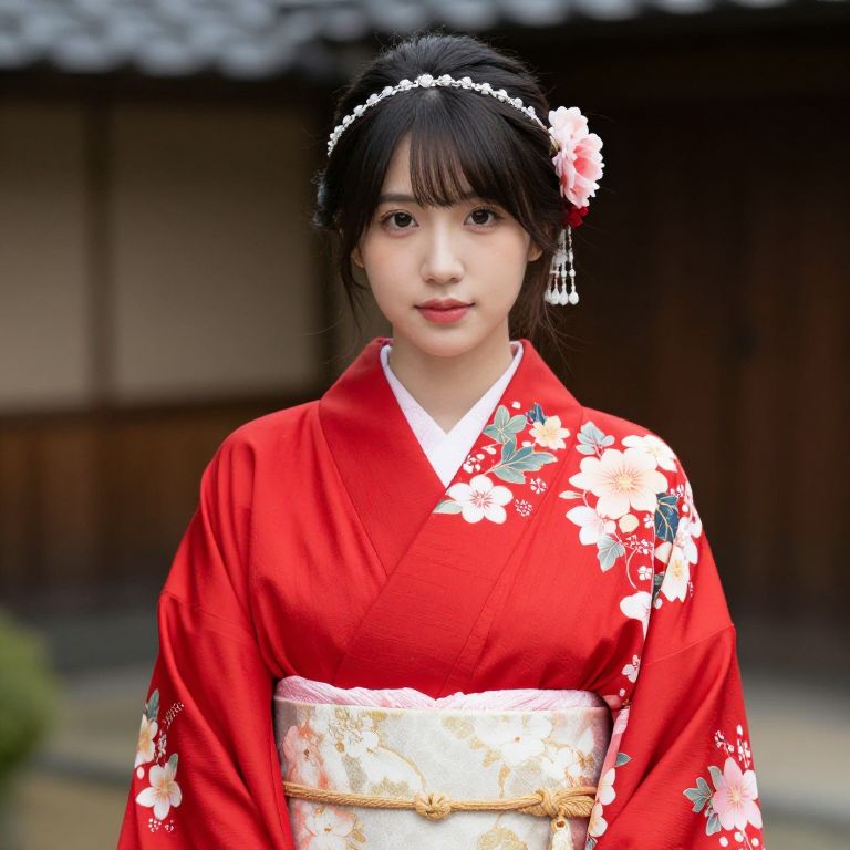 Woman in Red Floral Kimono