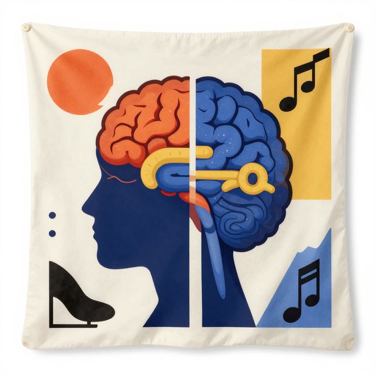 Draped a modern Bauhaus styled visualization of the essential elements of neuroscience and music colliding;,