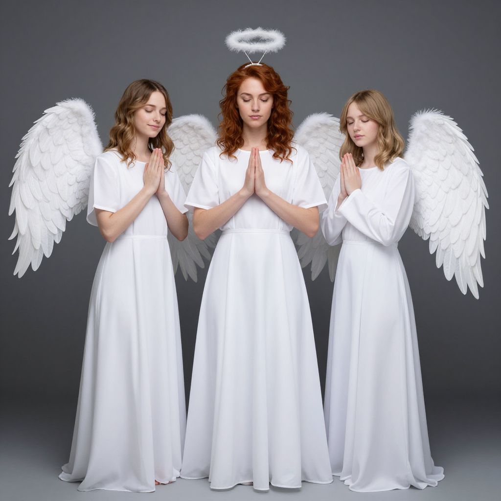 Trio Angel Costume, angel with halo and hands folded in prayer
