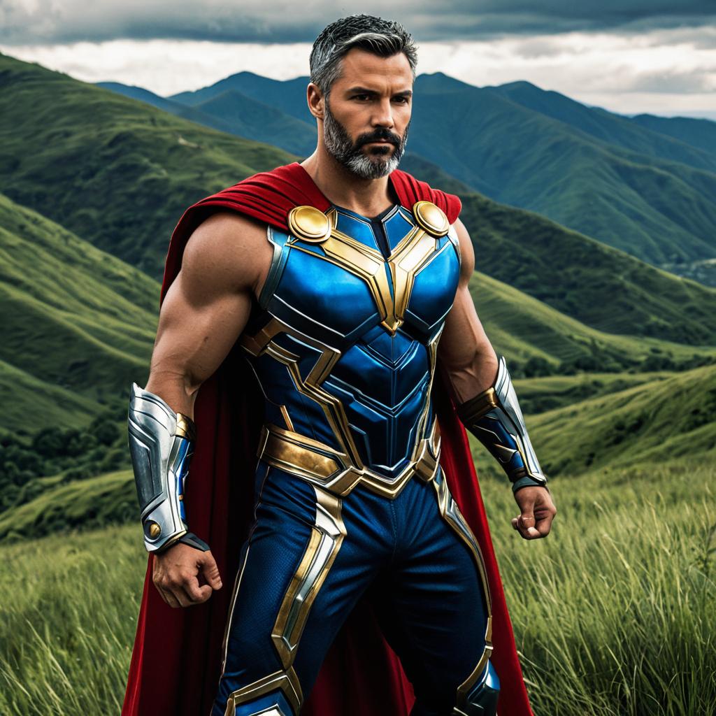 Male Superhero in Golden Armor on Urban Street