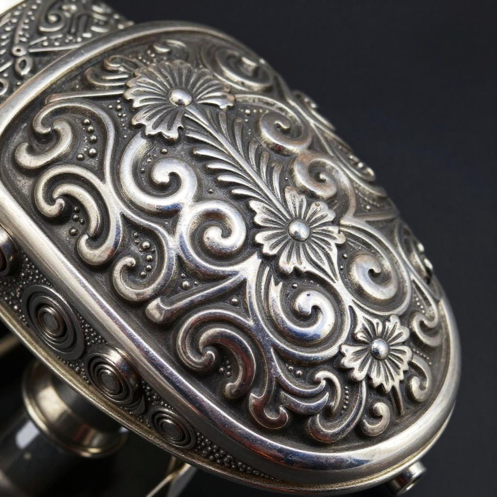 Intricate Silver Motorcycle Part Close-Up