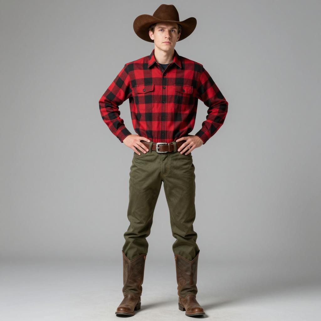 Simple sheep costume, photorealistic, full-body, standing male character, wearing ram-like furry hat with large curled horns, brown long coat with white fur trim, brown pants, brown belt, brown boots, gray background, neutral expression, front view, detailed ures, medieval fantasy outfit, realistic lighting, high quality, digital art, studio photography style