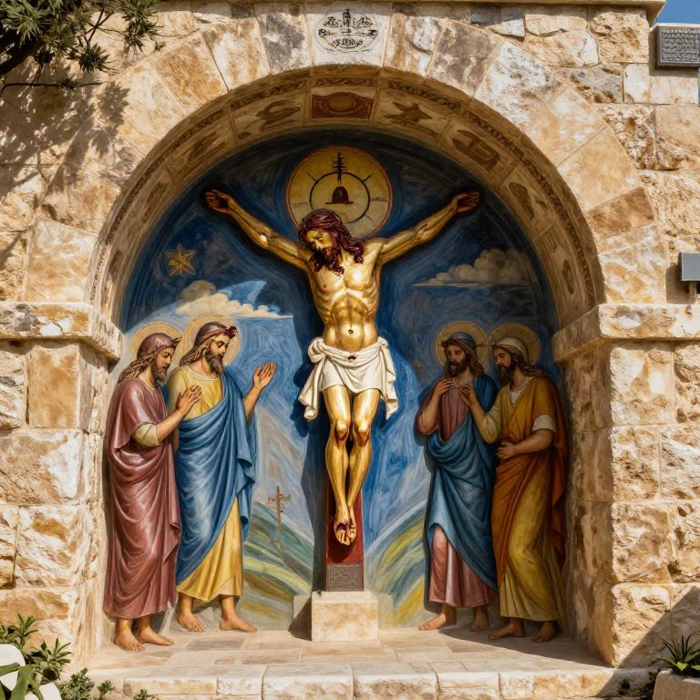 Margin Jesus Christs resurection in jerusalem, The Garden Tomb, גן הקבר, no other people, detailed, atmospheric, colorful lighting, sunny day, artistic, photorealistic,