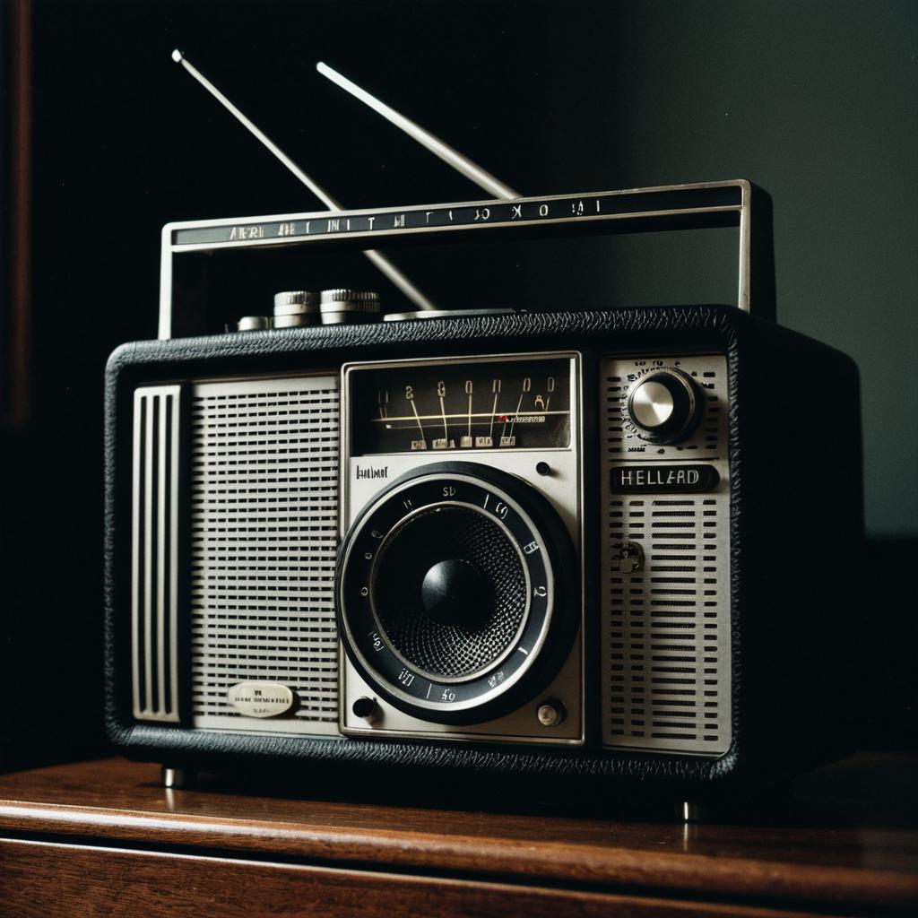 Vintage radio, photorealistic, Helmut Newton-inspired moody realism, Hasselblad X1D II, ISO 320, 80mm lens, highly detailed textures