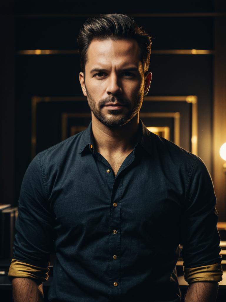Man in Casual Office Outfit, photorealistic detailed studio portrait --sref 1391