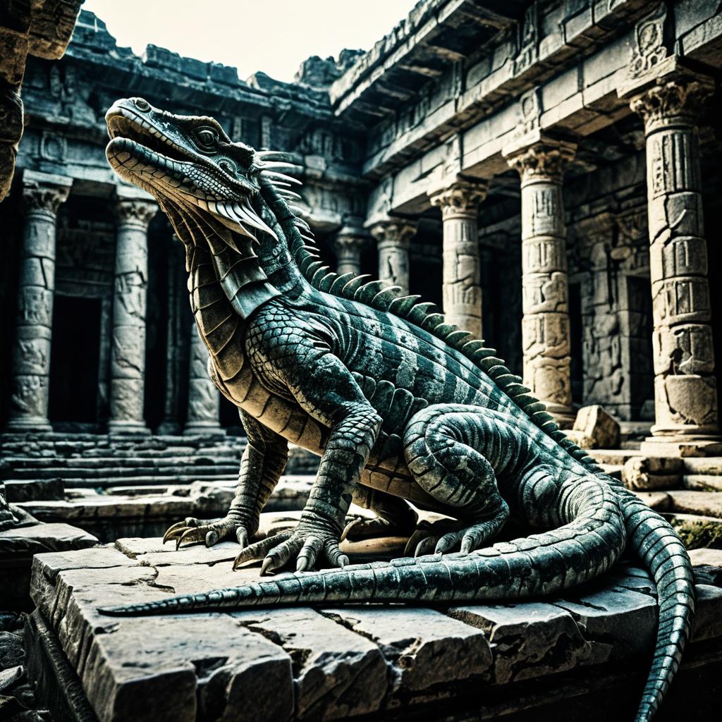 Marble Basilisk Statue in Sunken Temple Ruins