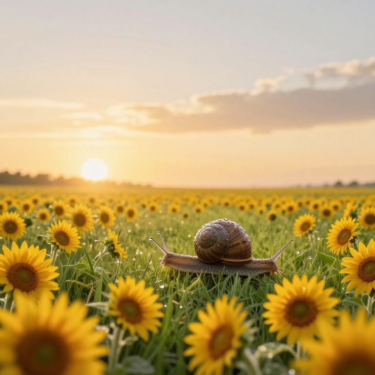 Surreal Snail Journey Through Sunflowers