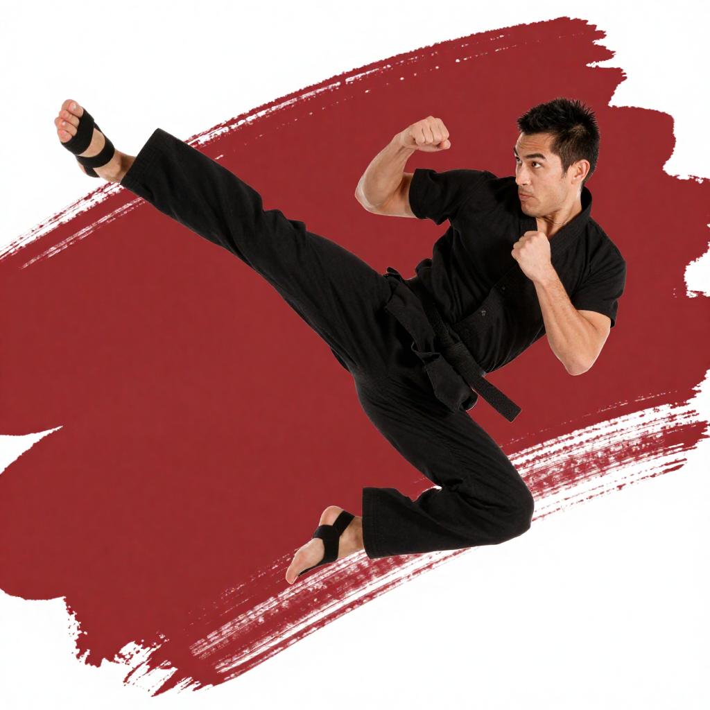 Dynamic Martial Artist Mid-Air Kick