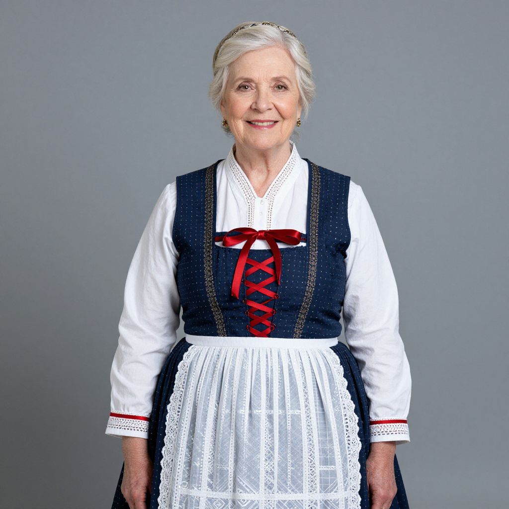 Granny Costume Woman, an older woman in a traditional dress poses for a portrait