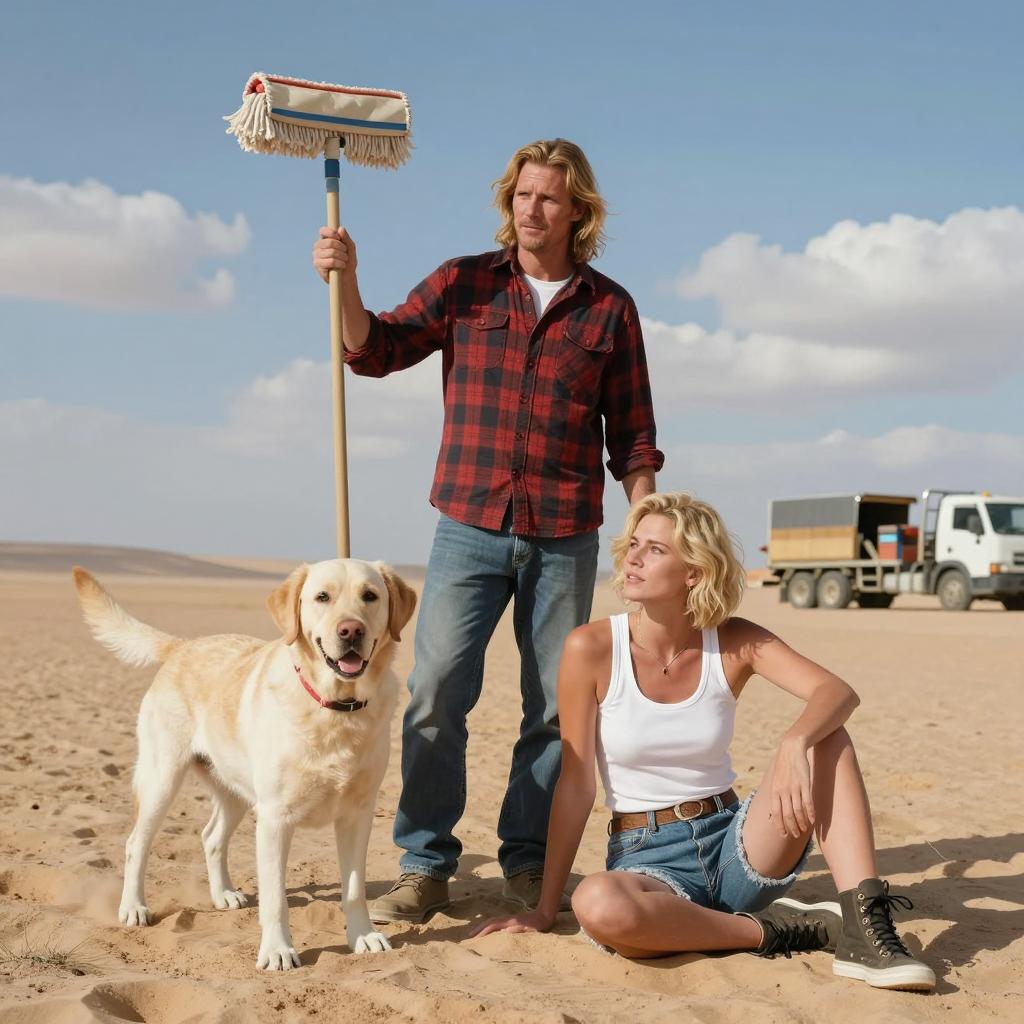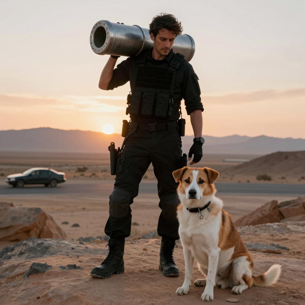Tactical Man and Dog in Desert Sunset
