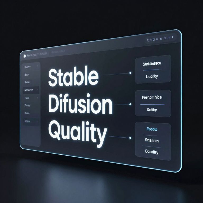 A sleek, modern data dashboard displaying stable diffusion quality tags in holographic panels, set against a dark, minimalistic background, clean typography with glowing effects, futuristic user interface elements, precision and clarity emphasized