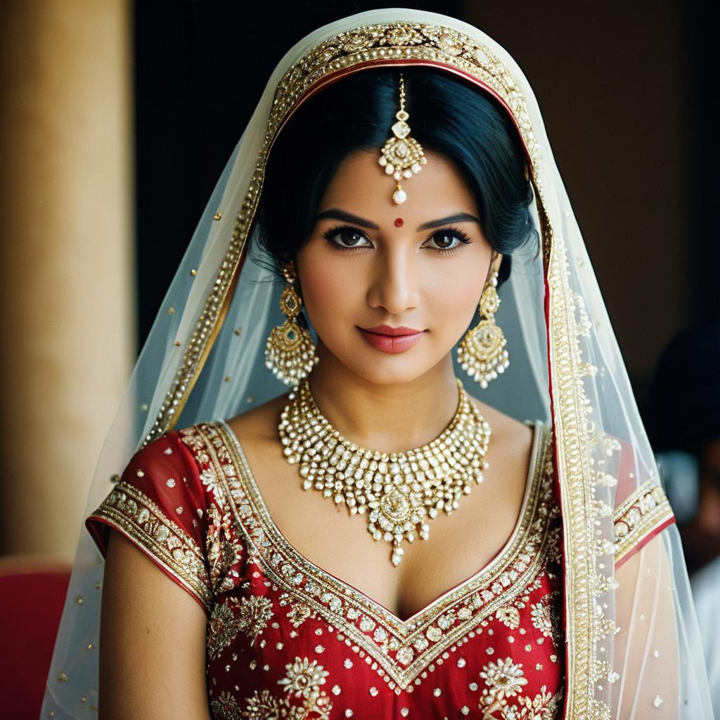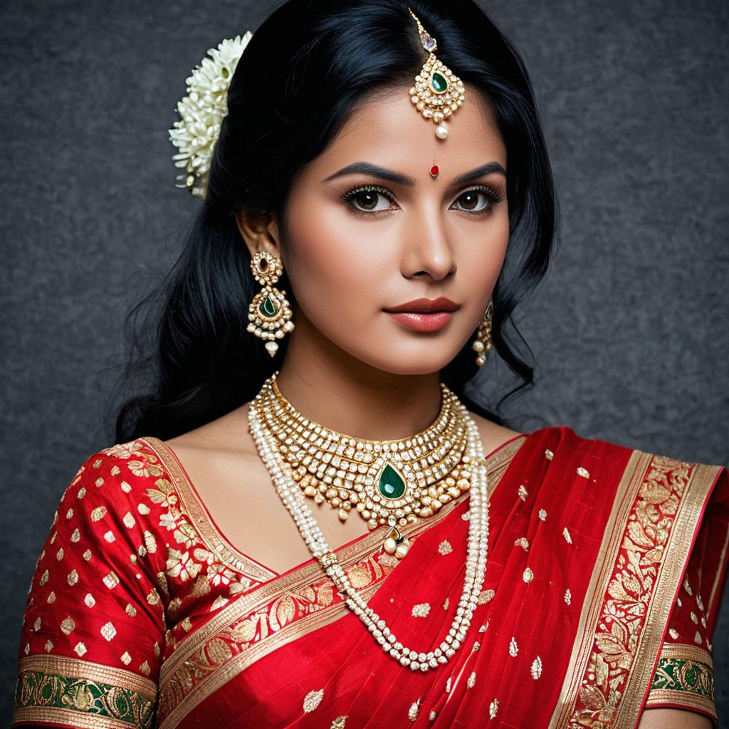 Indian Bride in Traditional Red Sari with Jewelry