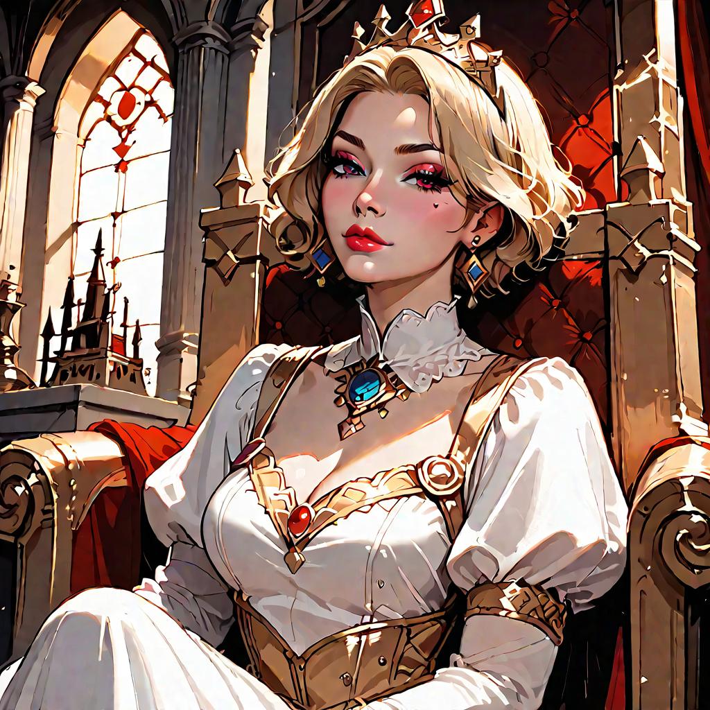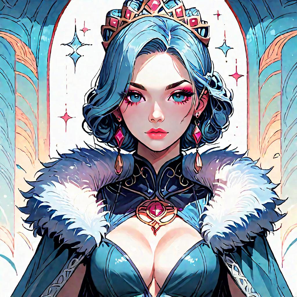 Anime Noblewoman Queen in Fur-Trimmed Dress
