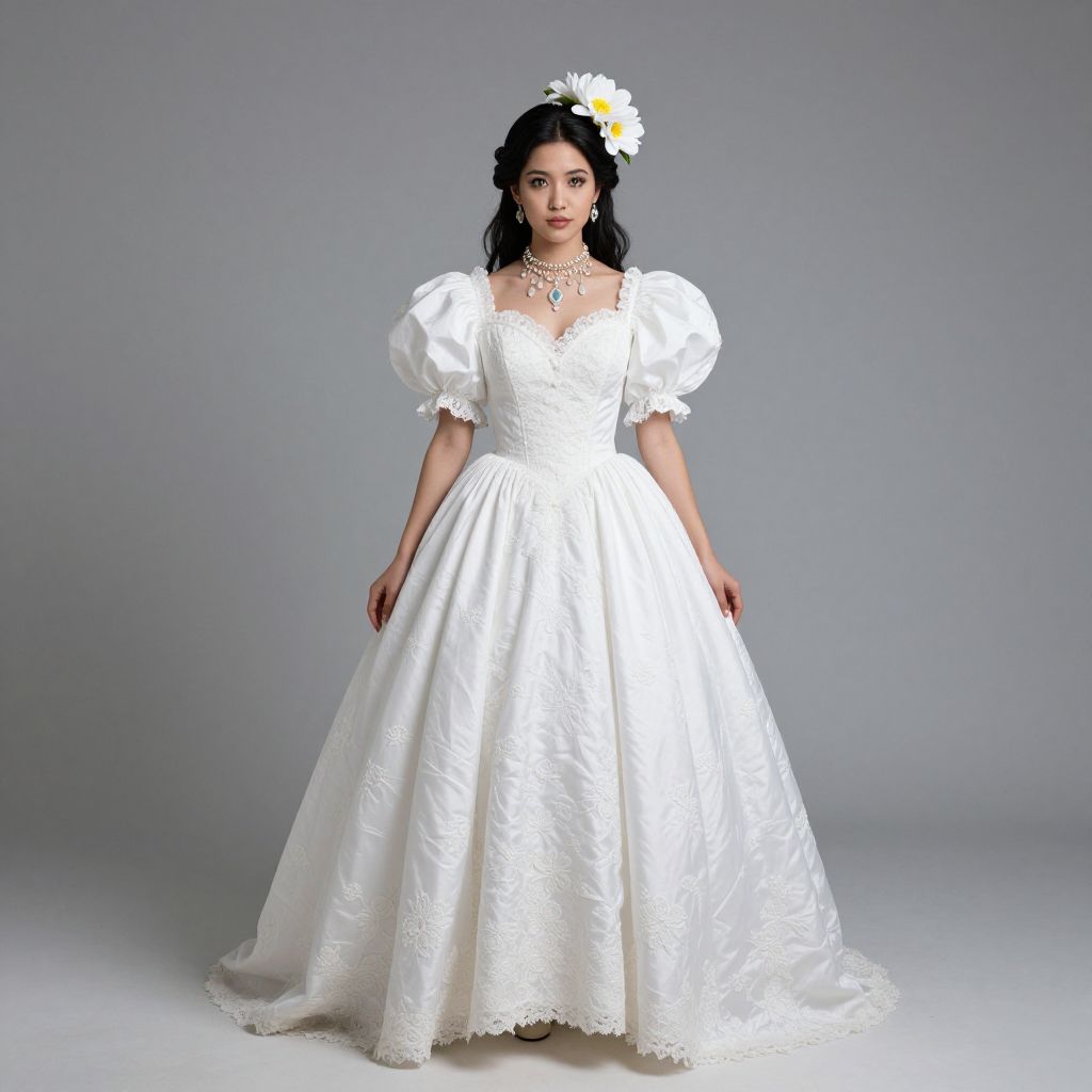Elegant Woman in White Fancy Frock