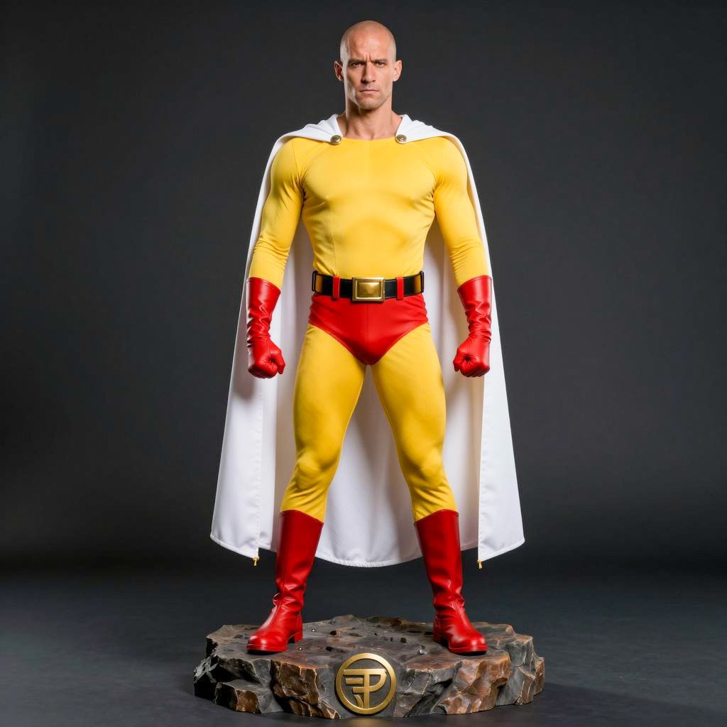 Heroic Muscular Superhero in Gray Suit