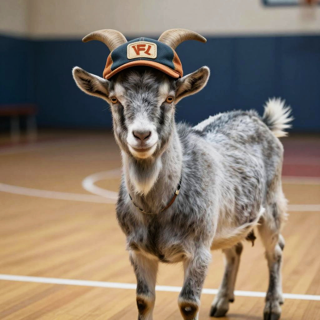 Regal Goat on Basketball Court