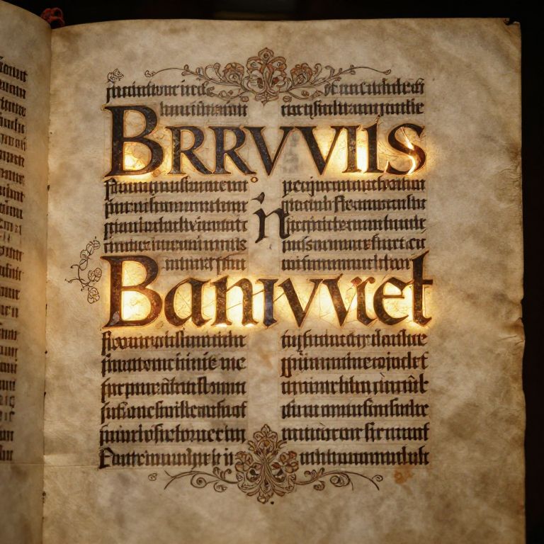 Brevis in an ancient manuscript style, illuminated letters glowing softly on aged parchment, surrounded by delicate floral decorations and medieval calligraphy, warm golden light highlighting intricate details, mystical atmosphere