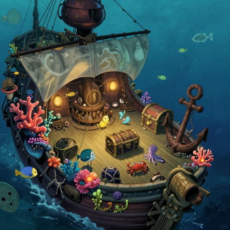 Create an underwater metropolis brimming with life, reminiscent of Miyazaki's enchanting worlds, where vibrant coral reefs border the bustling cityscape. From a 'bug's-eye view', depict a tiny crab navigating through intricate details of a lively aquatic community within bubble-domed structures, transitioning to serene outskirts where merfolk practice meditation and dance amidst gentle currents. Capture the energetic pulse of urban life alongside the peaceful tranquility of its inhabitants in this whimsical yet detailed scene.