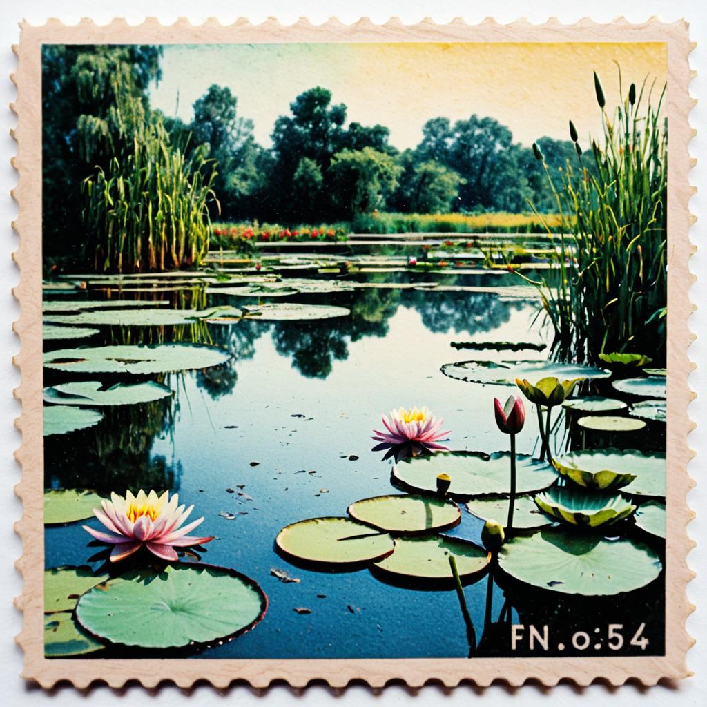 Cyberpunk Futurism rubber stamp, with an image of neon cityscape and glowing circuit lines.